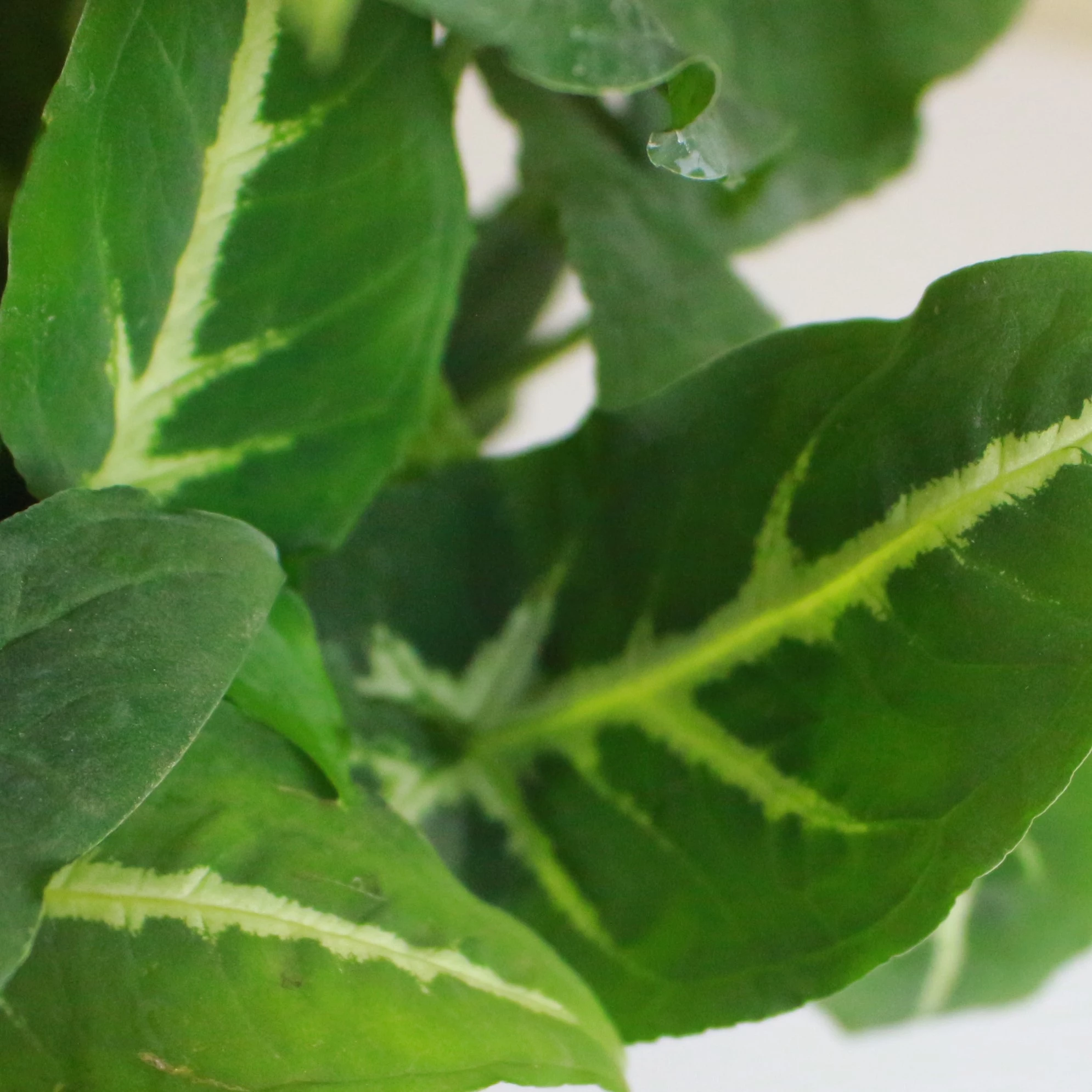 من أجمل السنجونيوم، أوراقها داكنة وفيها خط فضي في النص.