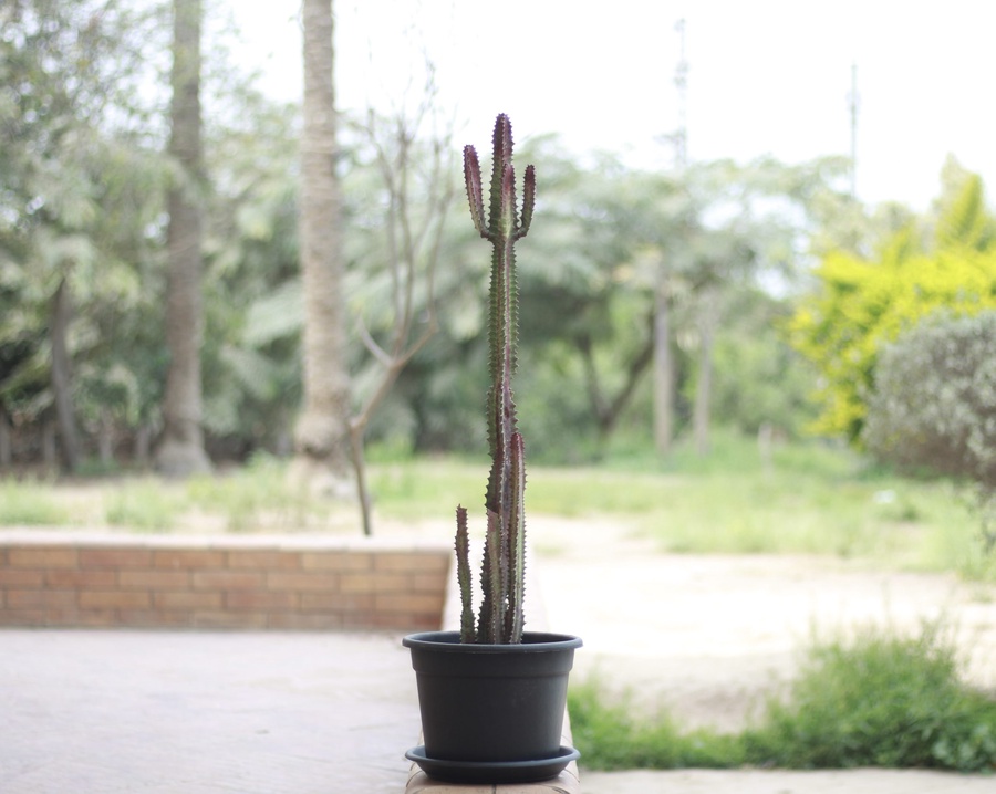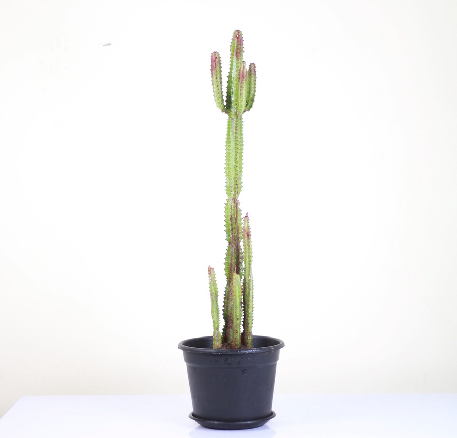 الاسم العلمي: إيفوربيا الشمعدان من النباتات العصاريه التي تأخذ شكل الشمعدان، ساق النبات مثلث الشكل وتحمل أوراقاً بيضاوية صغيرة على جوانبها، وتوجد على طول الساق خطوط بلون أخضر فاتح. - أقصي إرتفاع: 245 سم * قد يختلف المنتج الفعلي عن .الصورة المعروضة
