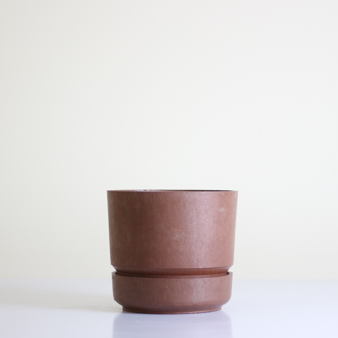 it may look simple but it's got great drainage holes. the height on this pot's saucer helps avoid water overflow.