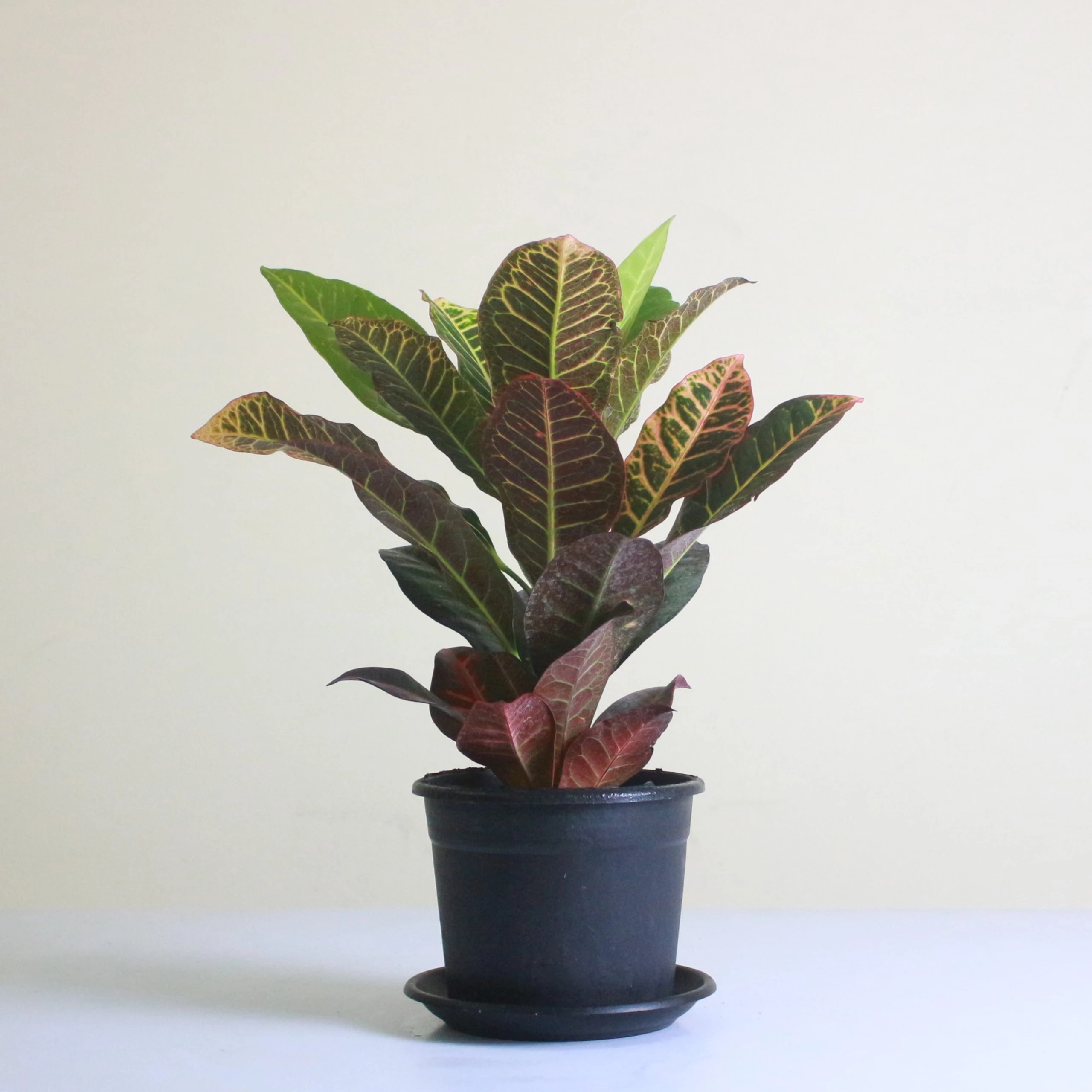 Croton نبتة Croton من فسيلة نبات ورقي ملون جدًا؛ أوراقها فيها درجات أخضر، أصفر، برتقالي وأحيانًا أحمر، تعطي طابع ديناميكي وحيوي.