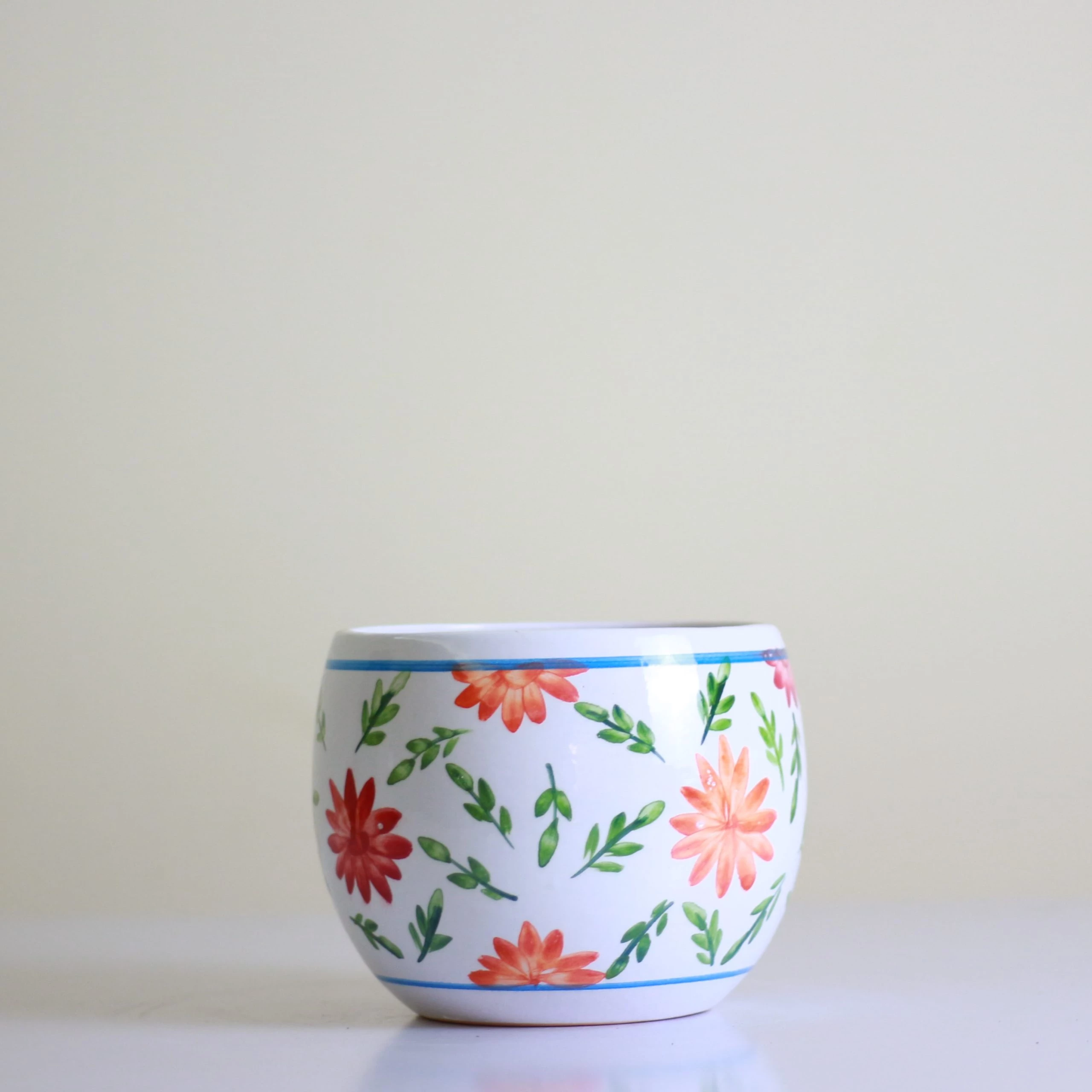 this pretty hand painted clay pot with colourful daisy flowers will make a lovely addition to your gift plant or home.