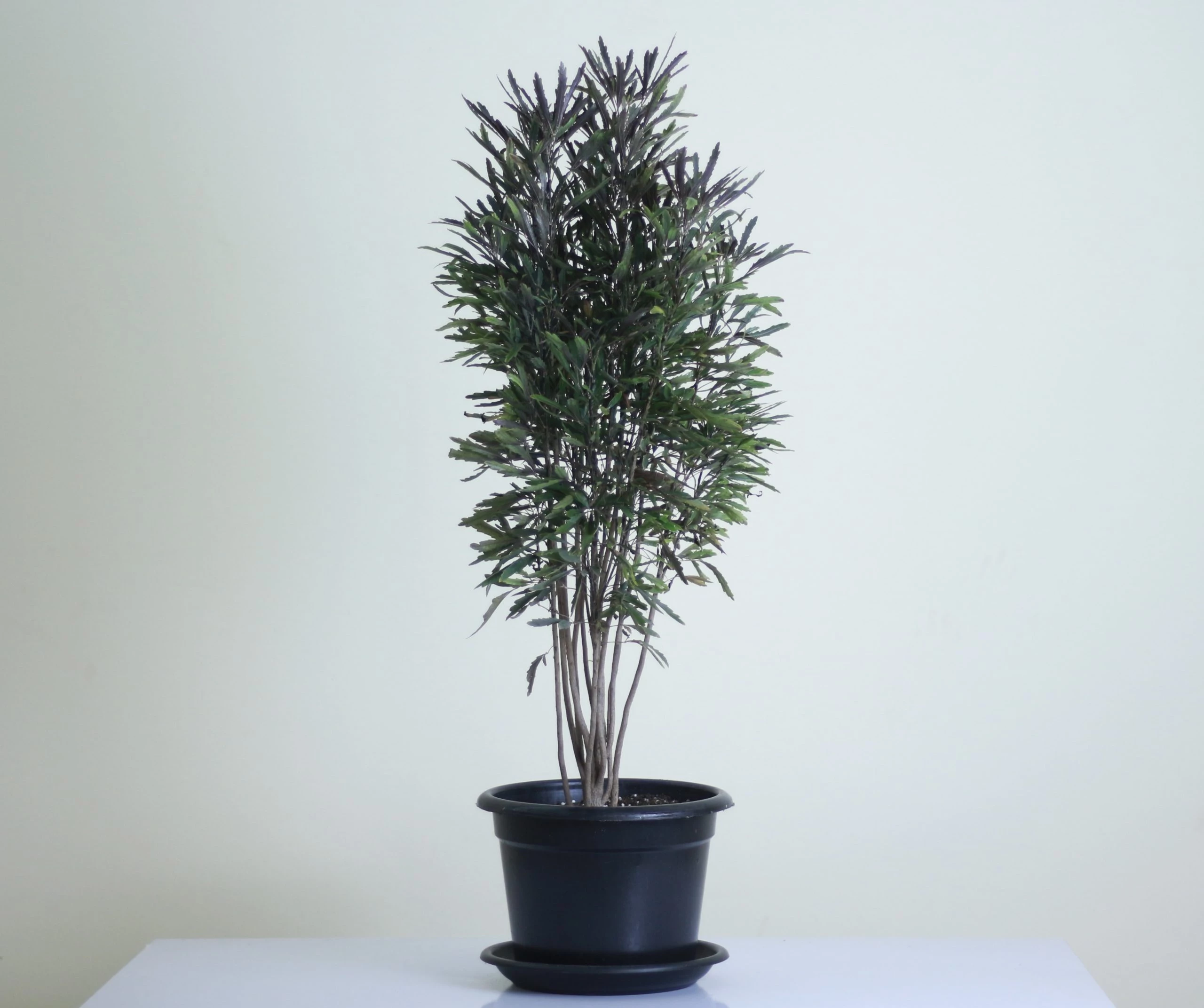 نبتة False Aralia أوراقها مميزة جدًا، خضرا رفيعة متفرعة شكلها درامي وراقي. تحتاج ضوء جيد غير مباشر ورطوبة عالية نسبيًا.