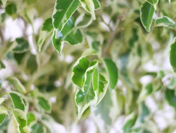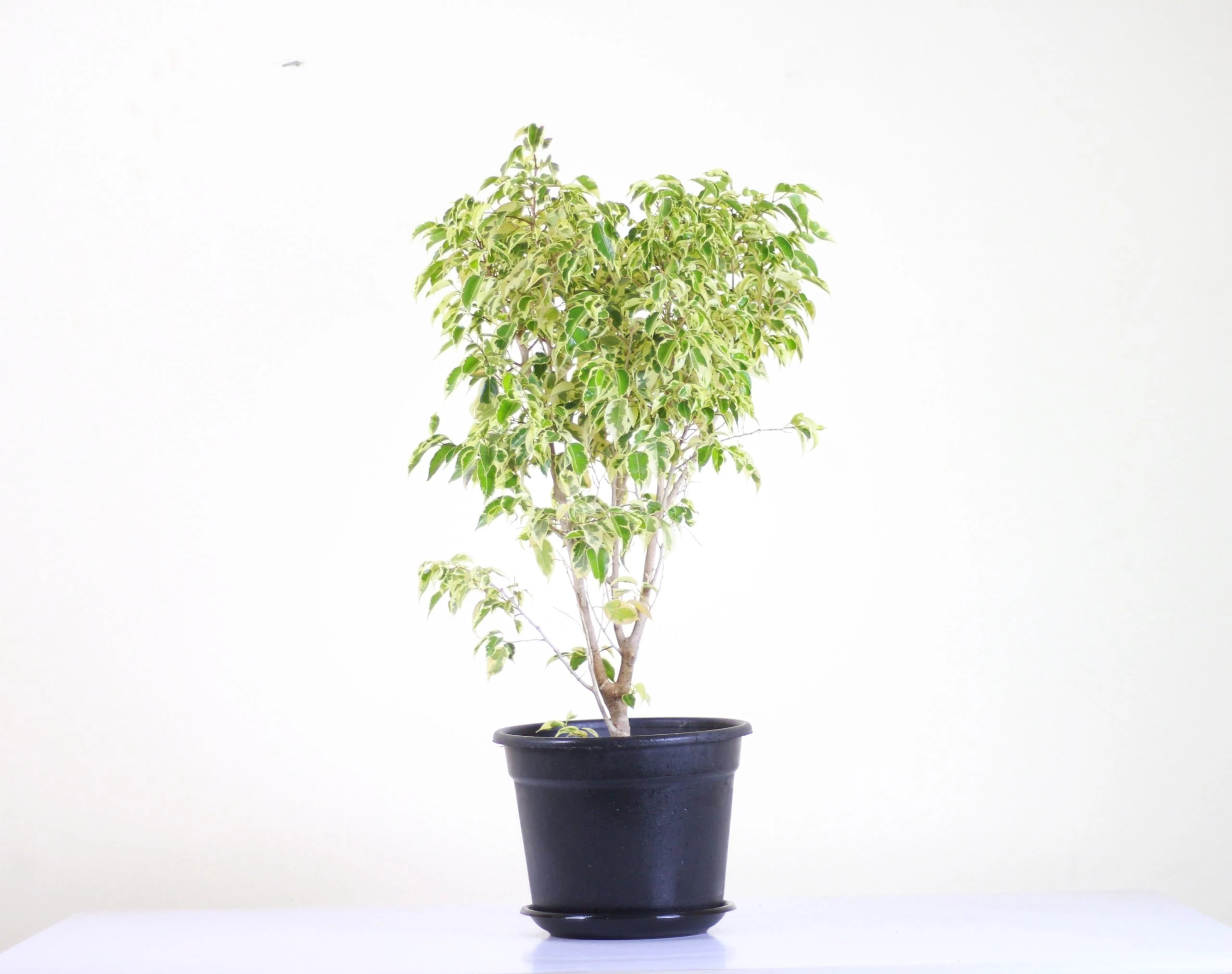 Ficus Hawaii has soft variegated foliage in green and cream, perfect for elegant interiors.