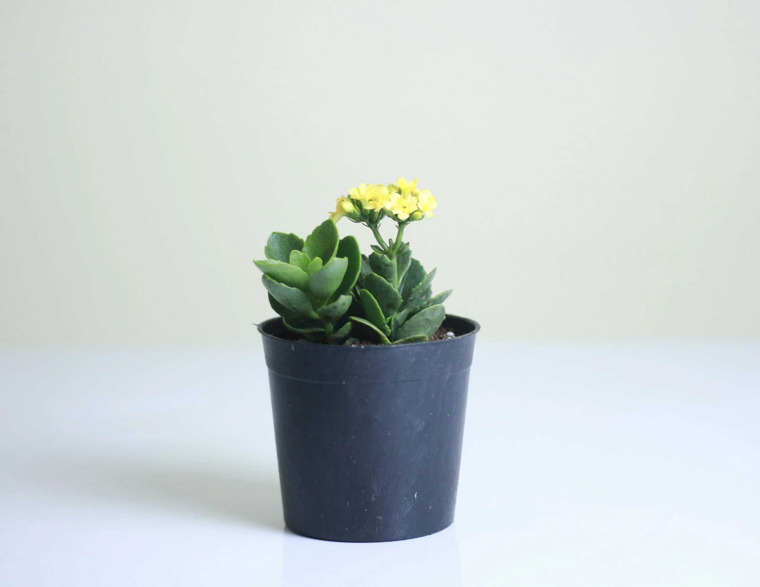 also known as flaming katy, christmas kalanchoe, madagascar widow's thrill, is a bushy evergreen succulent perennial, the leaves are fleshy, scallop-edged, ovate and dark green in color. the small flowers are arranged in dense clusters.