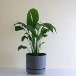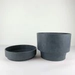 just like its twin brown cylinder pot, this pot is sturdy, simple, and functional with drainage holes and a tall saucer that helps avoid water overflow.
