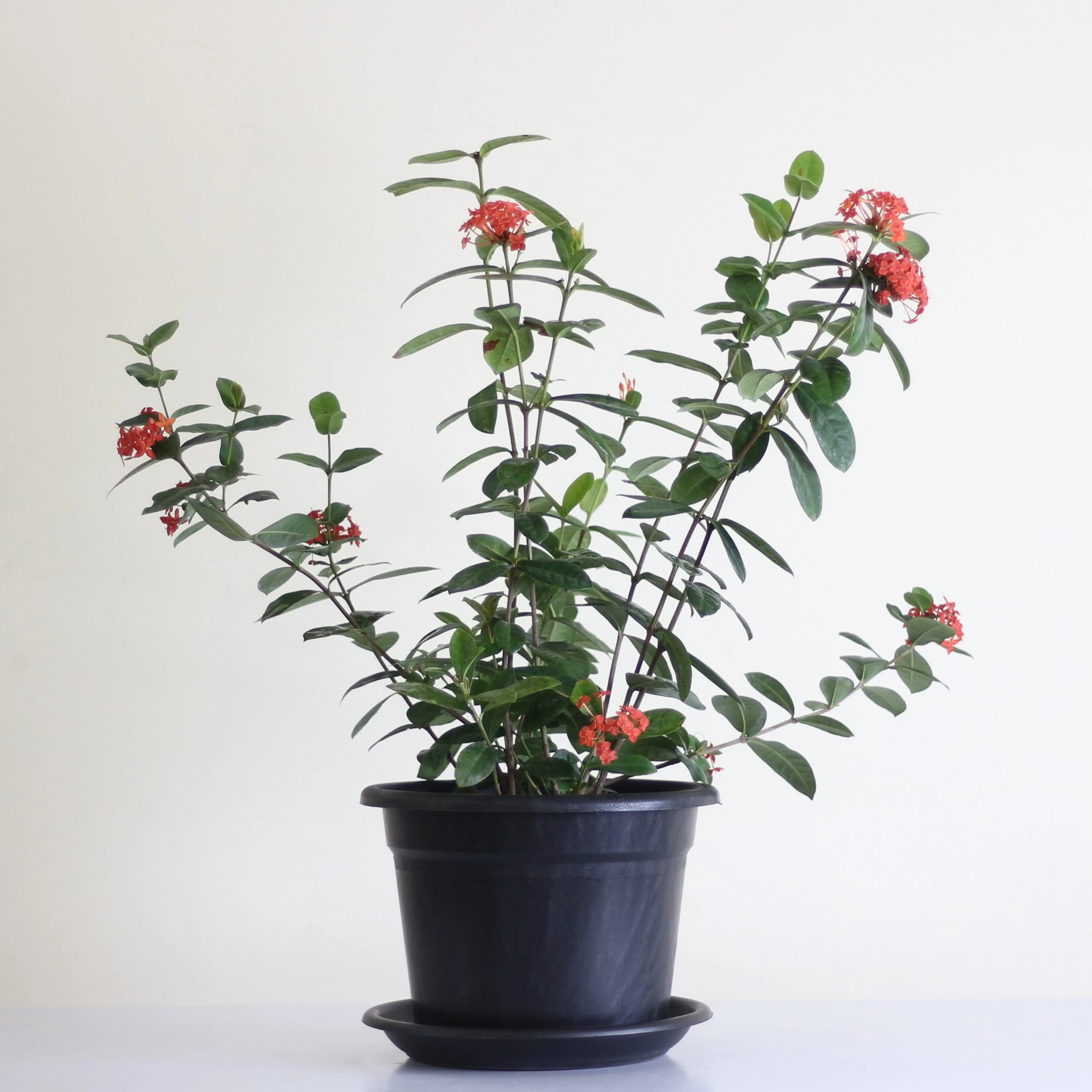 Jungle Flame features striking clusters of vivid flowers, perfect for bold color accents outdoors.