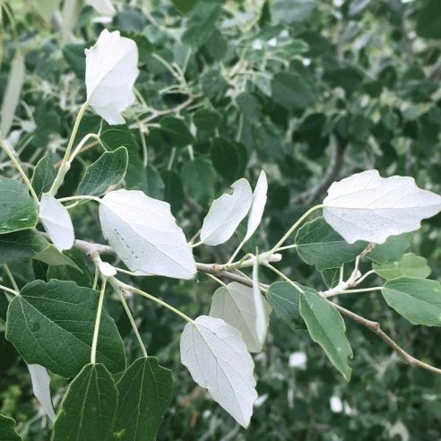 a fast-growing tree with beautiful ornamental foliage, its big leaves resemble maple leaves with a white underside that contrasts with the darker tone on top giving an alluring view.
