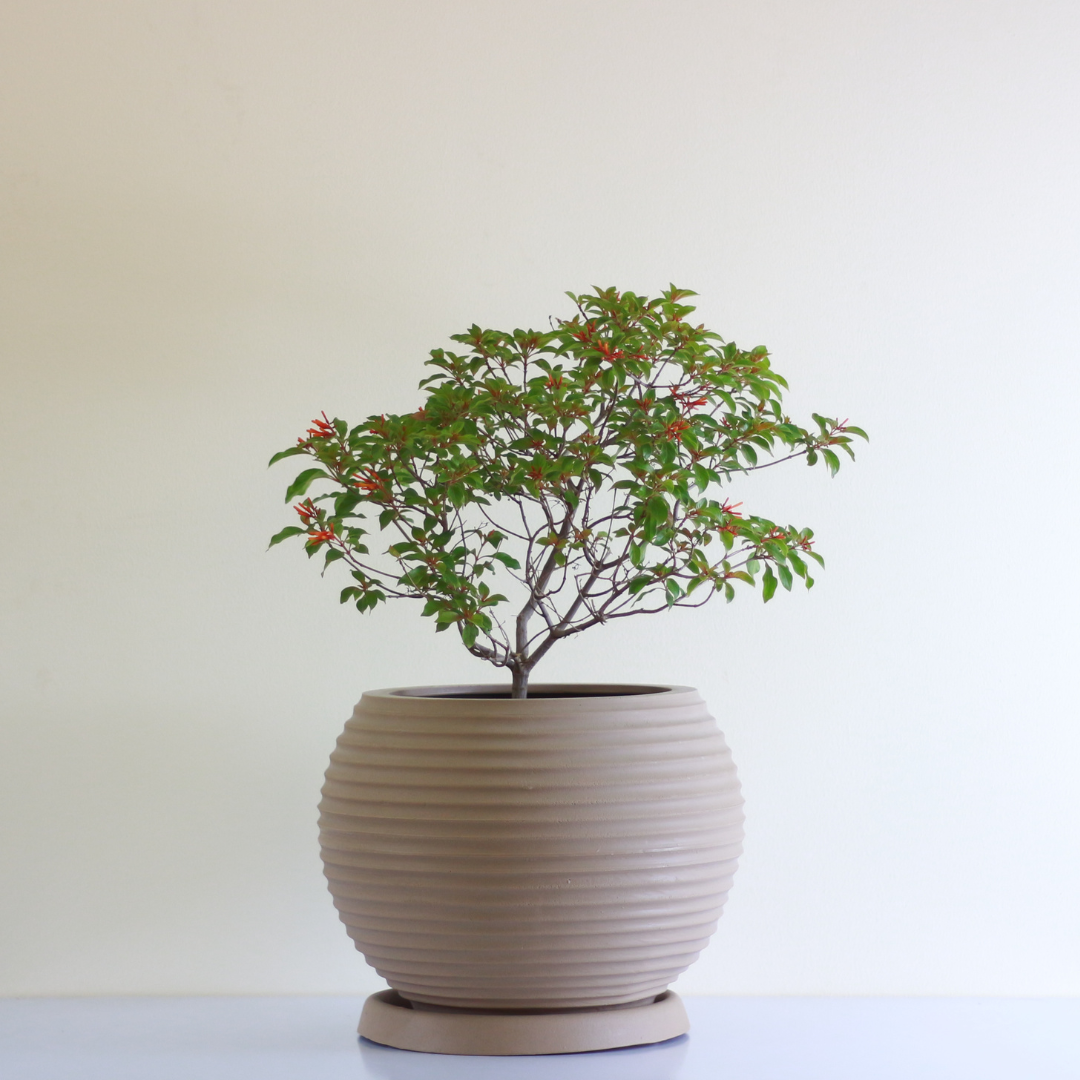 durable, sturdy, and cute. this plastic round-striped pot is an amazing addition to your terrace or garden.
